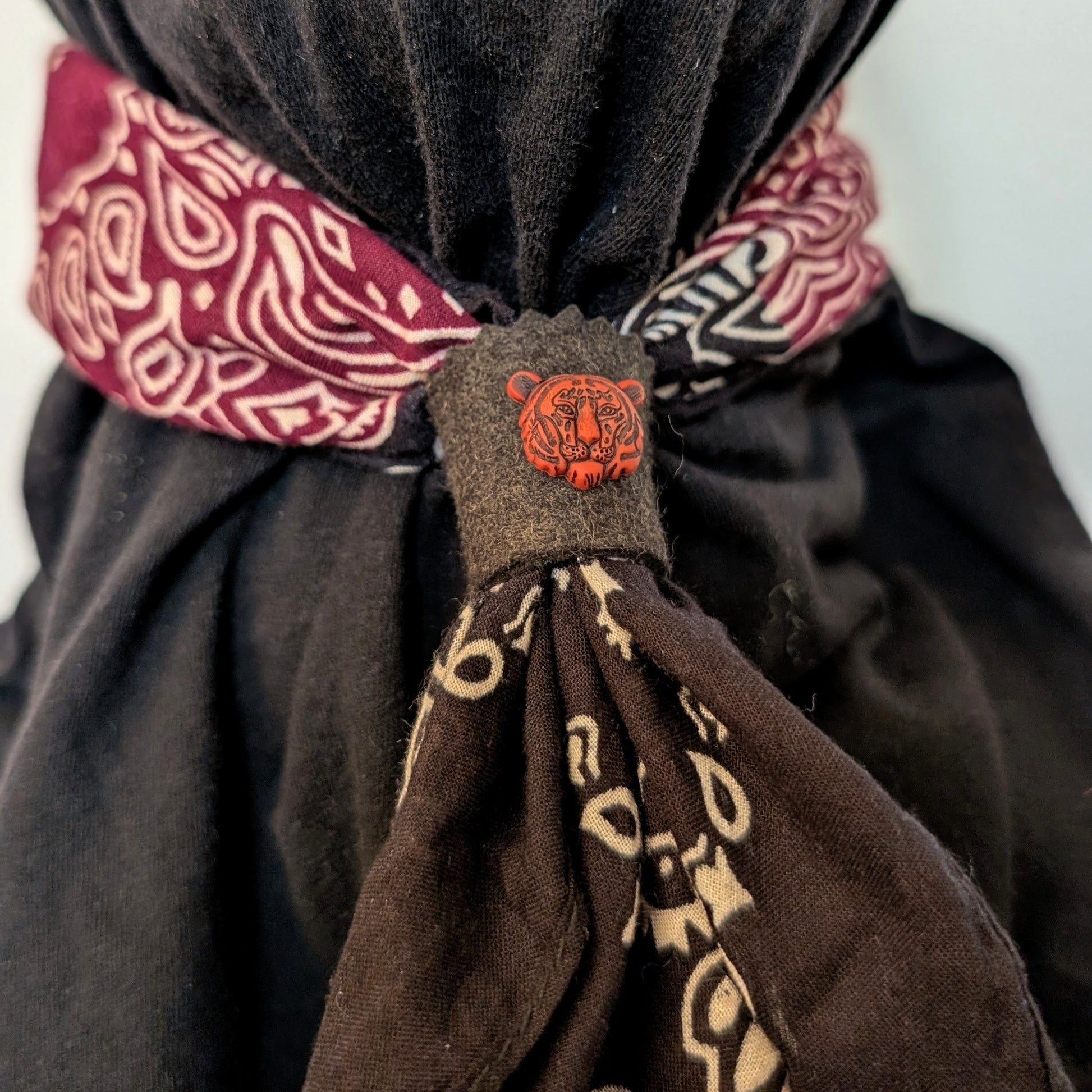 Add a little extra flair to your fit, with a Neckerchief slide! These slides are all made of remnant hat felt, that would otherwise be thrown away. (Bandana not included)