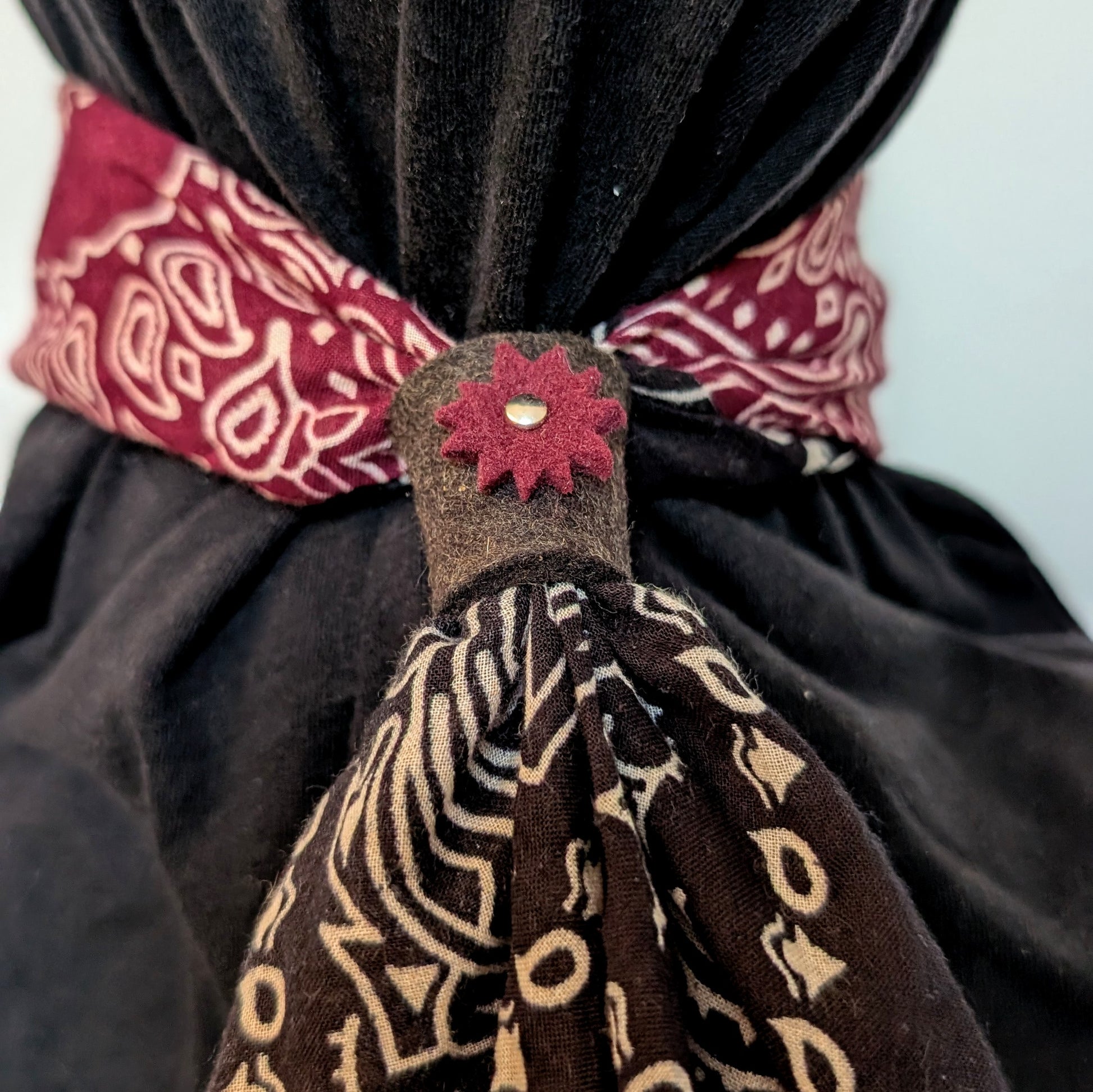 Add a little extra flair to your fit, with a Neckerchief slide! These slides are all made of remnant hat felt, that would otherwise be thrown away. (Bandana not included)