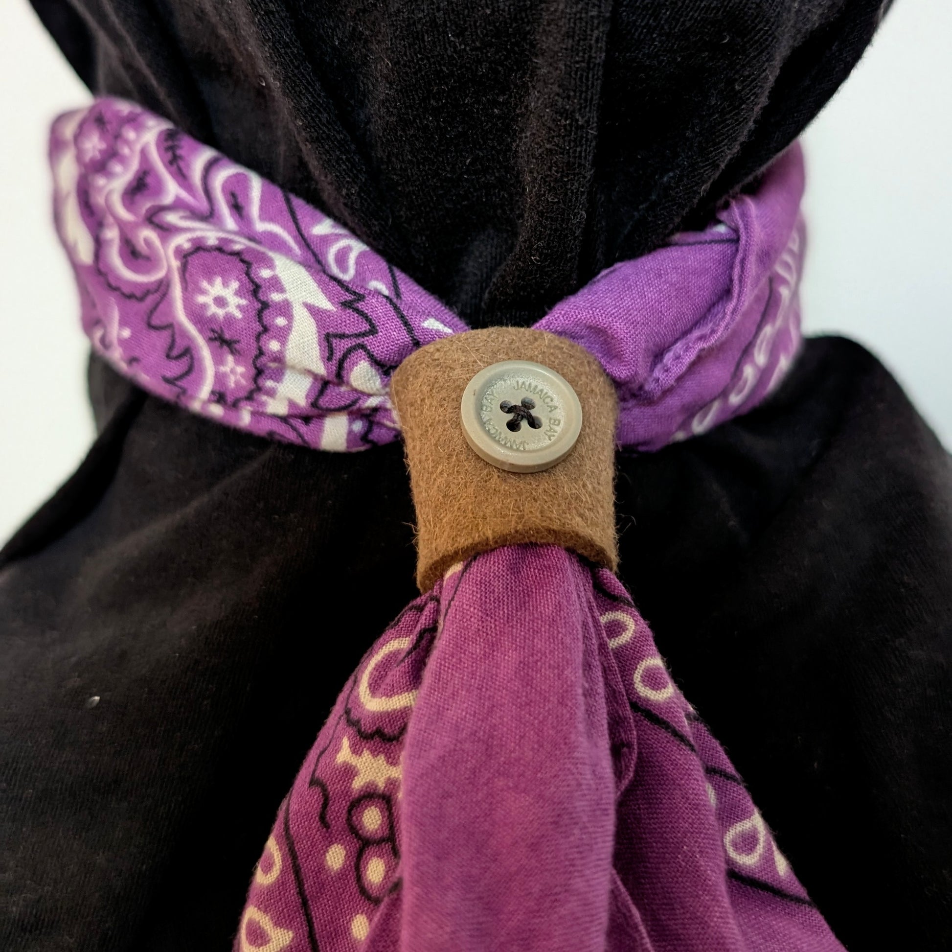 Add a little extra flair to your fit, with a Neckerchief slide! These slides are all made of remnant hat felt, that would otherwise be thrown away. (Bandana not included)