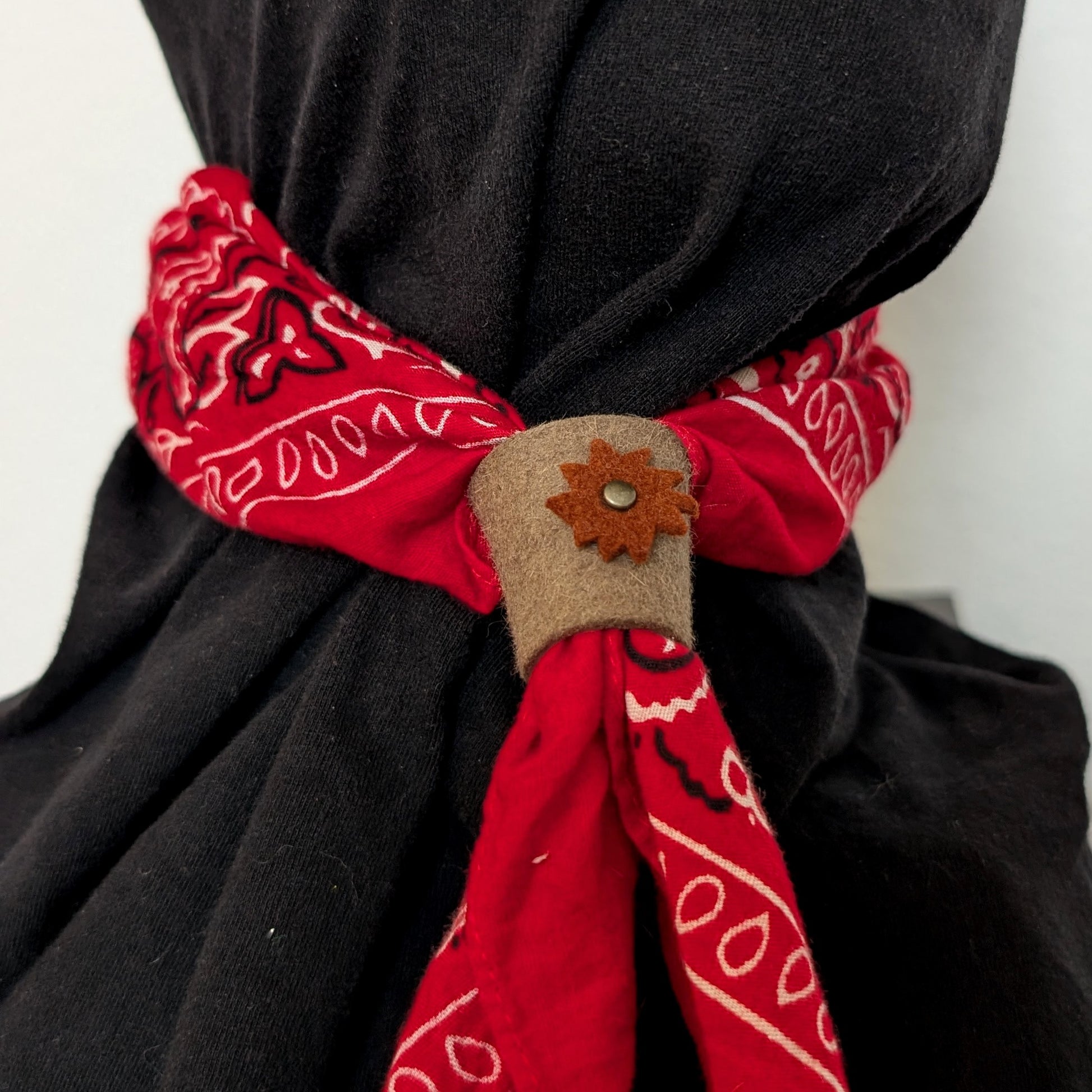 Add a little extra flair to your fit, with a Neckerchief slide! These slides are all made of remnant hat felt, that would otherwise be thrown away. (Bandana not included)