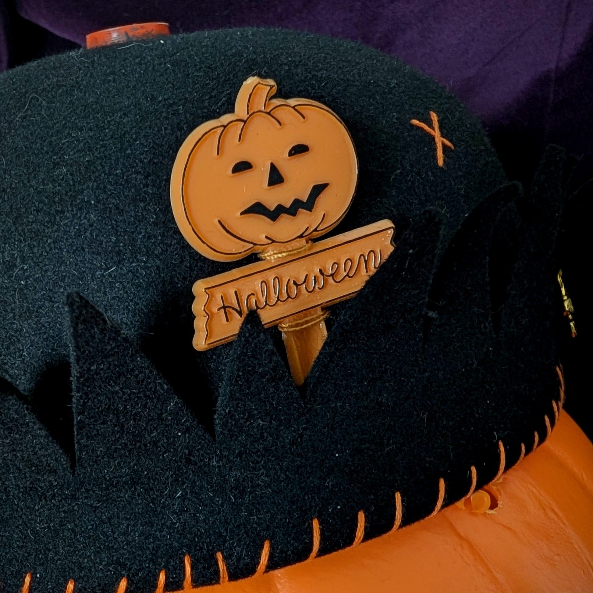Every day is Halloween, they say. To celebrate, I present a cap sporting traditional colors, classic vintage trinkets, and some frankensteinian stitching.