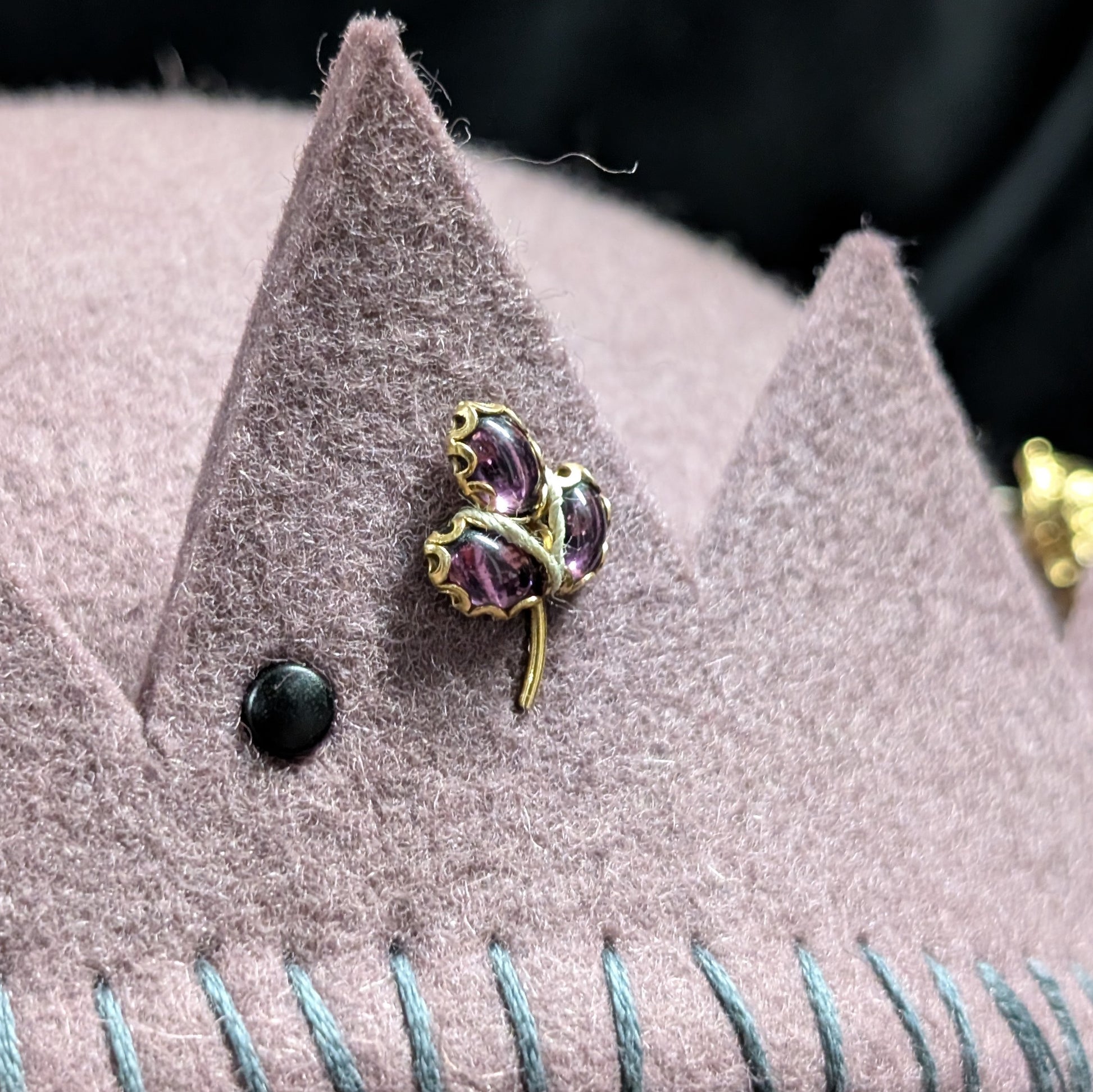 Mauve? Dusty Rose? Either way the dark grey whip stitch around the rim really compliments it. Minimal accessories, but just enough sparkle.