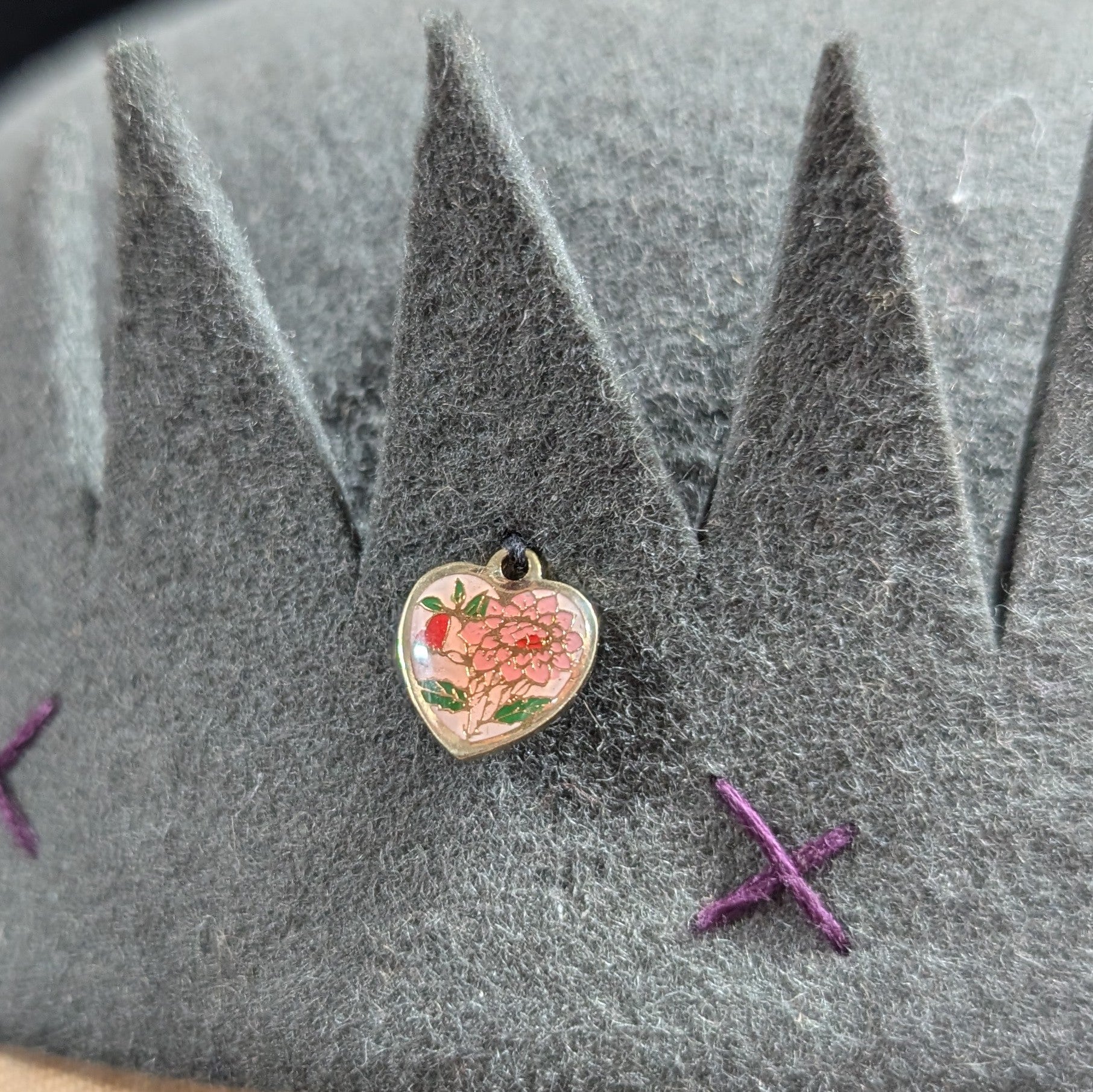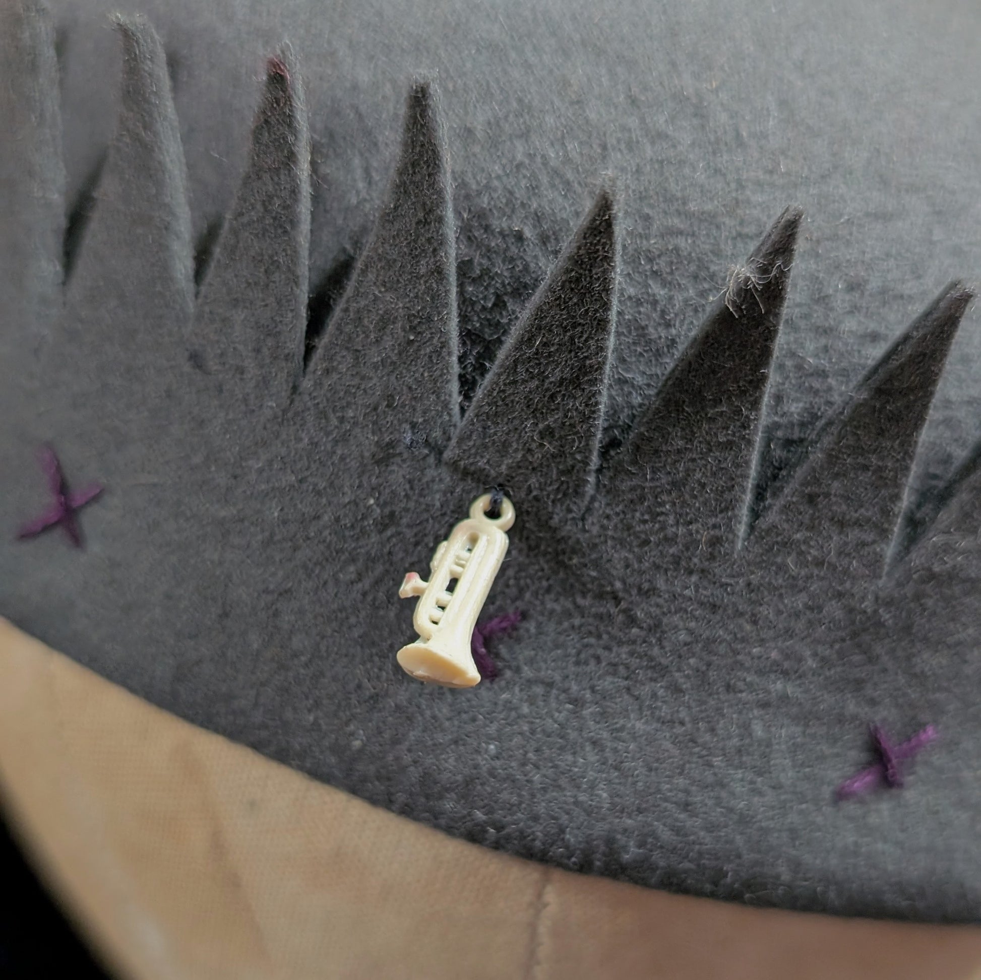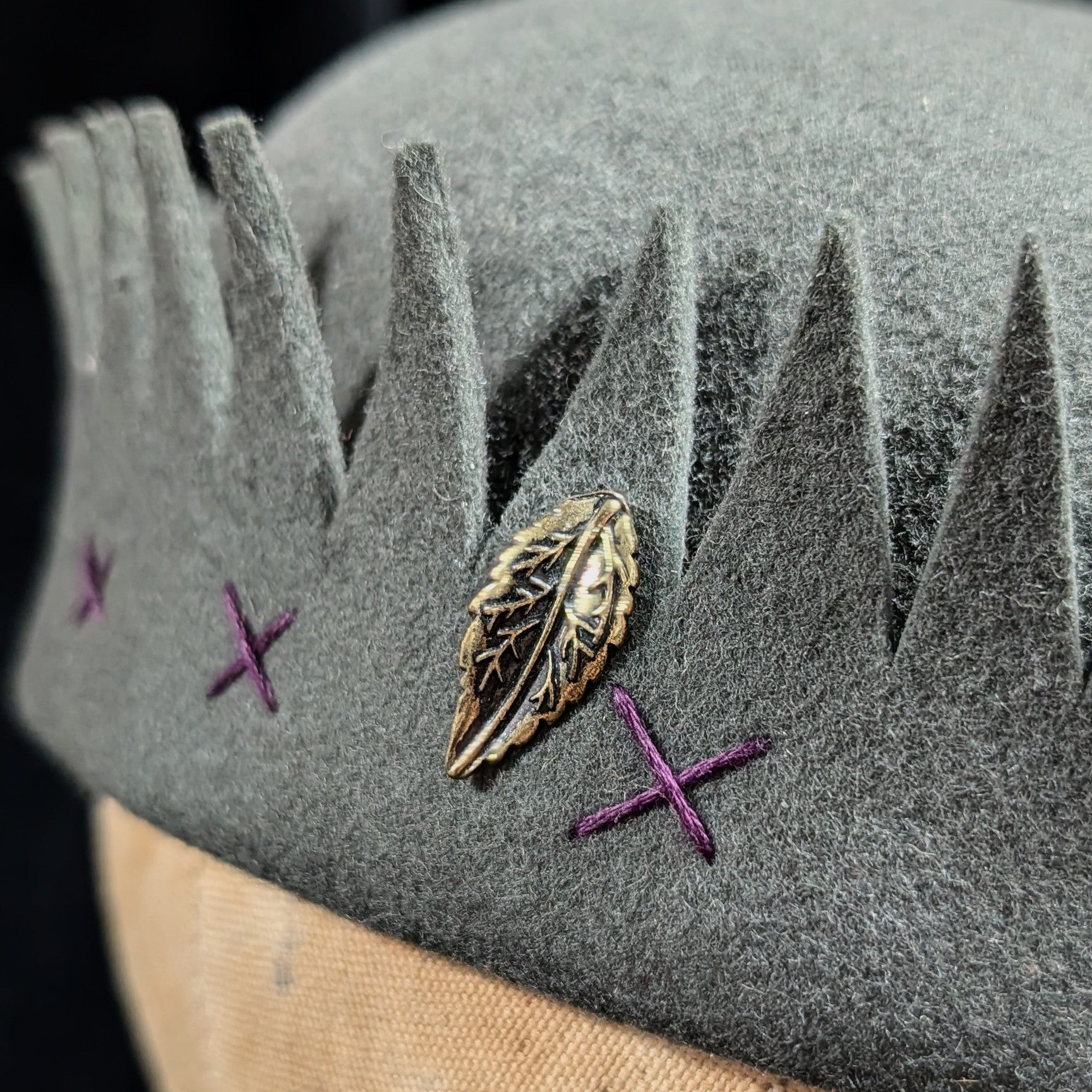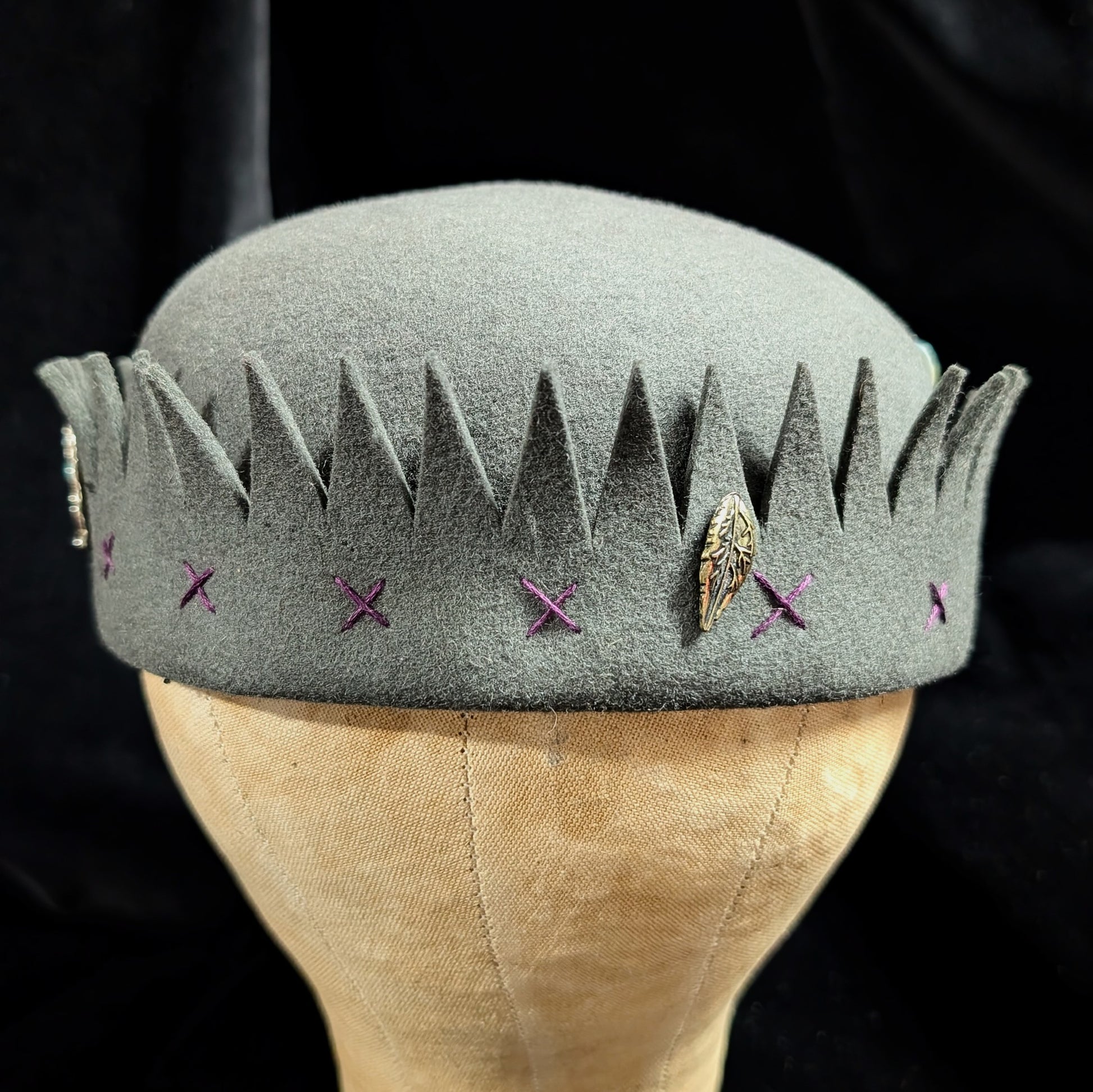 Made from a cozy-soft wool fedora, this cool colored cap features narrow points and purple X stitches. Size 7 (M)